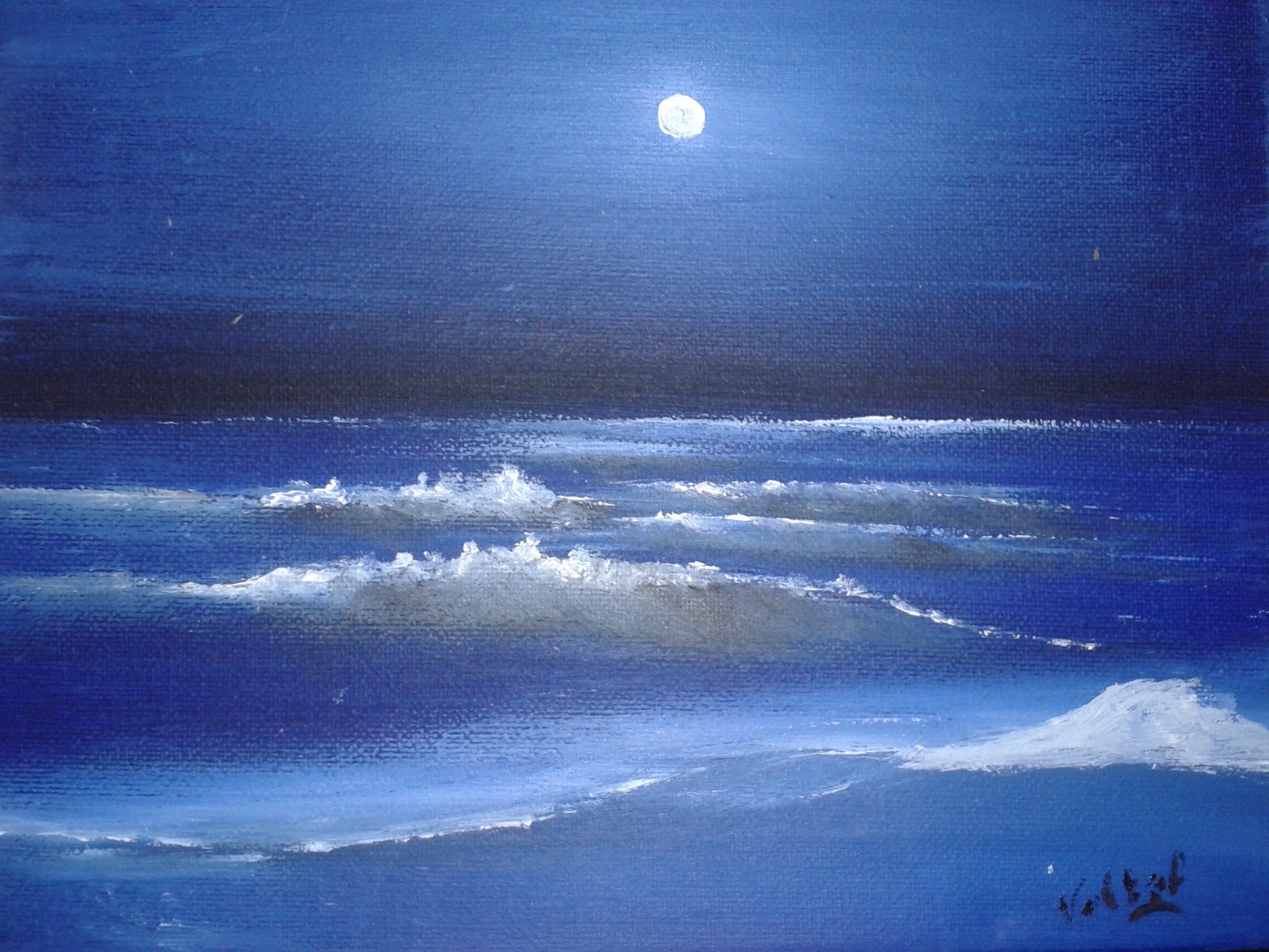 Remarquable la clarte de la lune sur les vagues.Comme le reste de votre galerie ce tableau invite a la reverie.Bravo