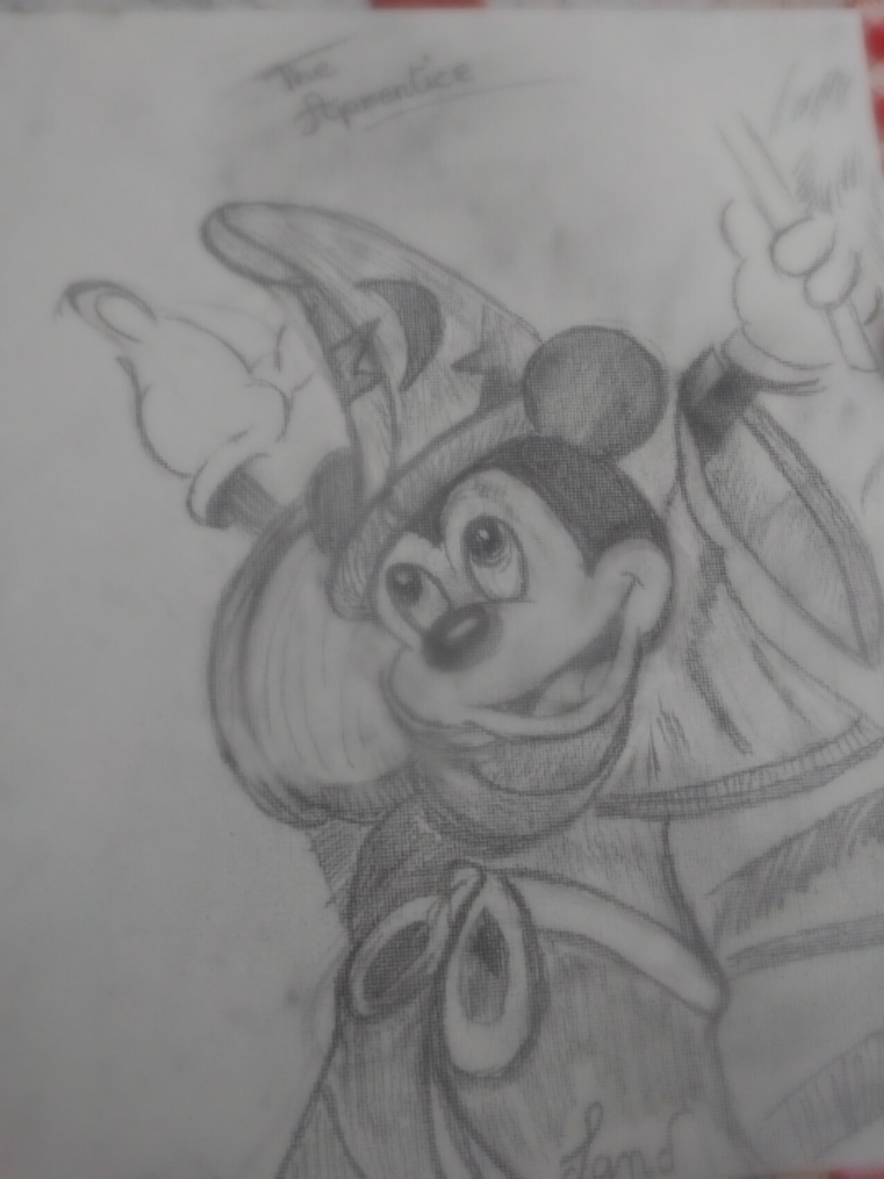 dessin au fusain réalisé sur une toile cette toile a la signature de mickey de Disney land paris
