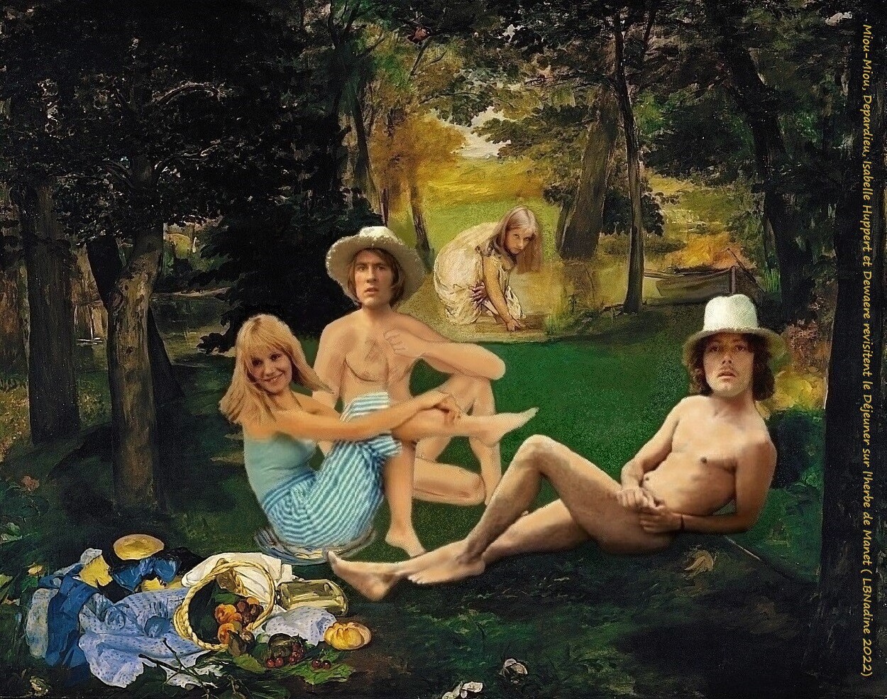Miou-Miou, Depardieu , Huppert et Dewaere dans le Déjeuner sur l'herbe de Manet..