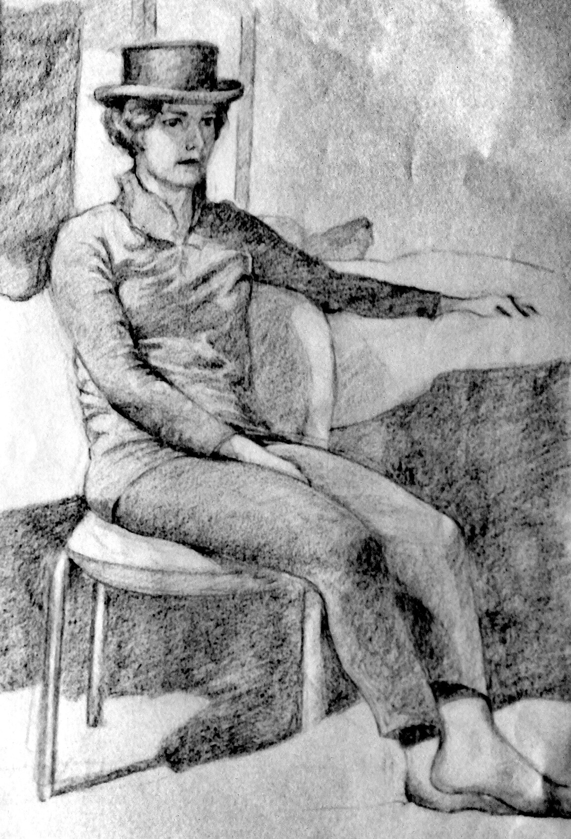 Dessin fait d'après le réel. Une pose du modèle vivant à l'atelier.