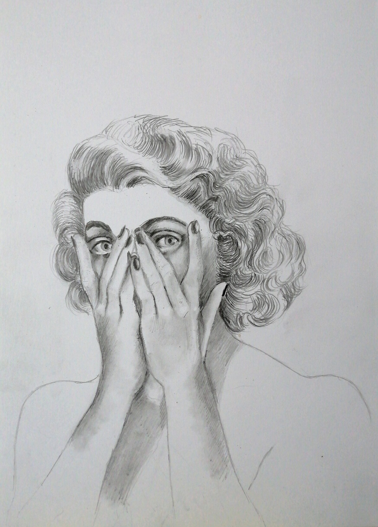 bonjour, Incognito, elle se cache le visage car quelque chose la surprend mais je l'ai reconnue, c'est Madona. Vous l'avez bien capté aux crayons. Bonne continuation.