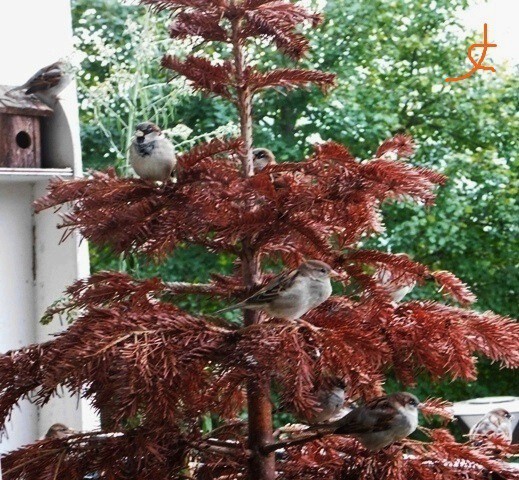 ... Allain et tous les membres de la L.P.O, peuvent être tranquilles, les moineaux...ne sont pas tous en mode inquiétante de disparition !! - Une vraie régalade, pour moi, de les entendre, tjs piaffer, matin, midi & soir, et réclamer leur "vieux pain", sur l'balcon !!! - Nota: sont plus encore, mais certains quand je sors l'appareil....sont encore timides!! - cliché d' OCTOBRE ROUGE 2020...en région.