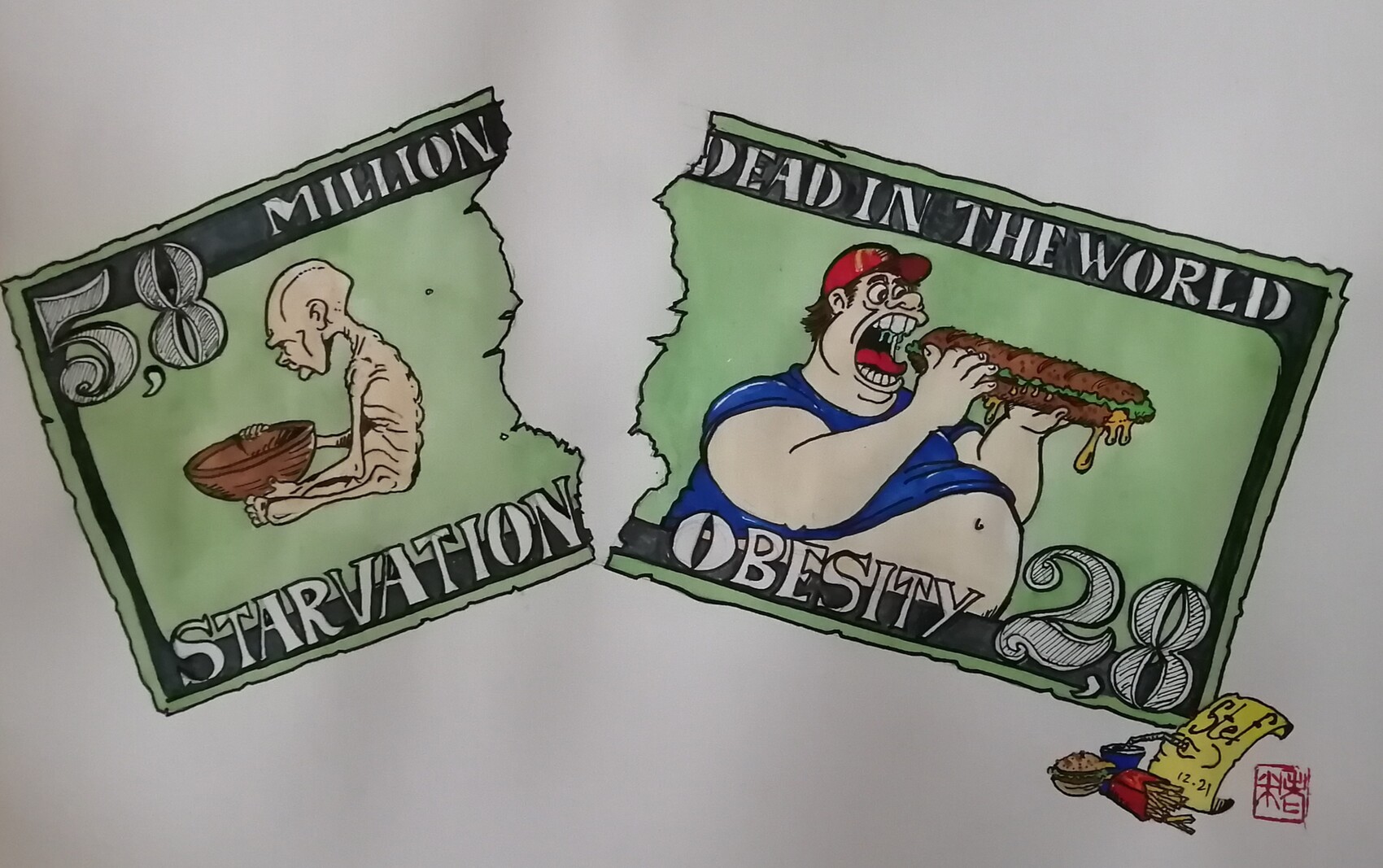 d'un côté le drame de la faim de l'autre celui de la malbouffe... triste Humanité