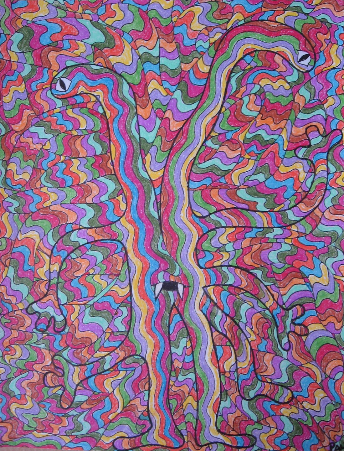 Dessin aux crayons d'un monstre ressemblant à un arbre.