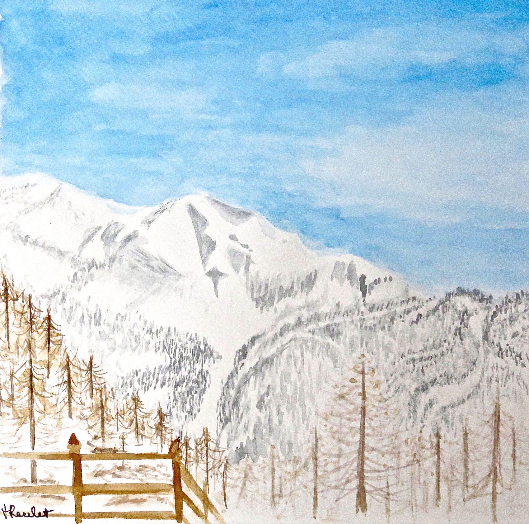 Montagne enneigée devant Prats-Hauts / Painting : a snowy mountain beside the village of Prats-Hauts