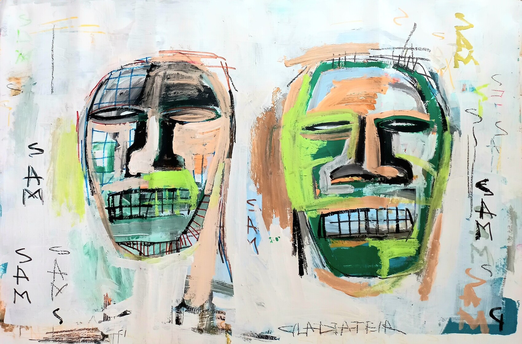 Art-Sourd 117x80cm acrylique sur carton signé Sam KEUSSEYAN-Gladiateur Livraison inclus 06 25 20 02 02 keusseyan1980@hotmail.com