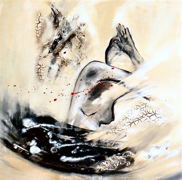 Fait partie d'une série de toiles appelées "Silhouettes"m Tech/mixte sur toile 100x100 (collection privée Strasbourg)