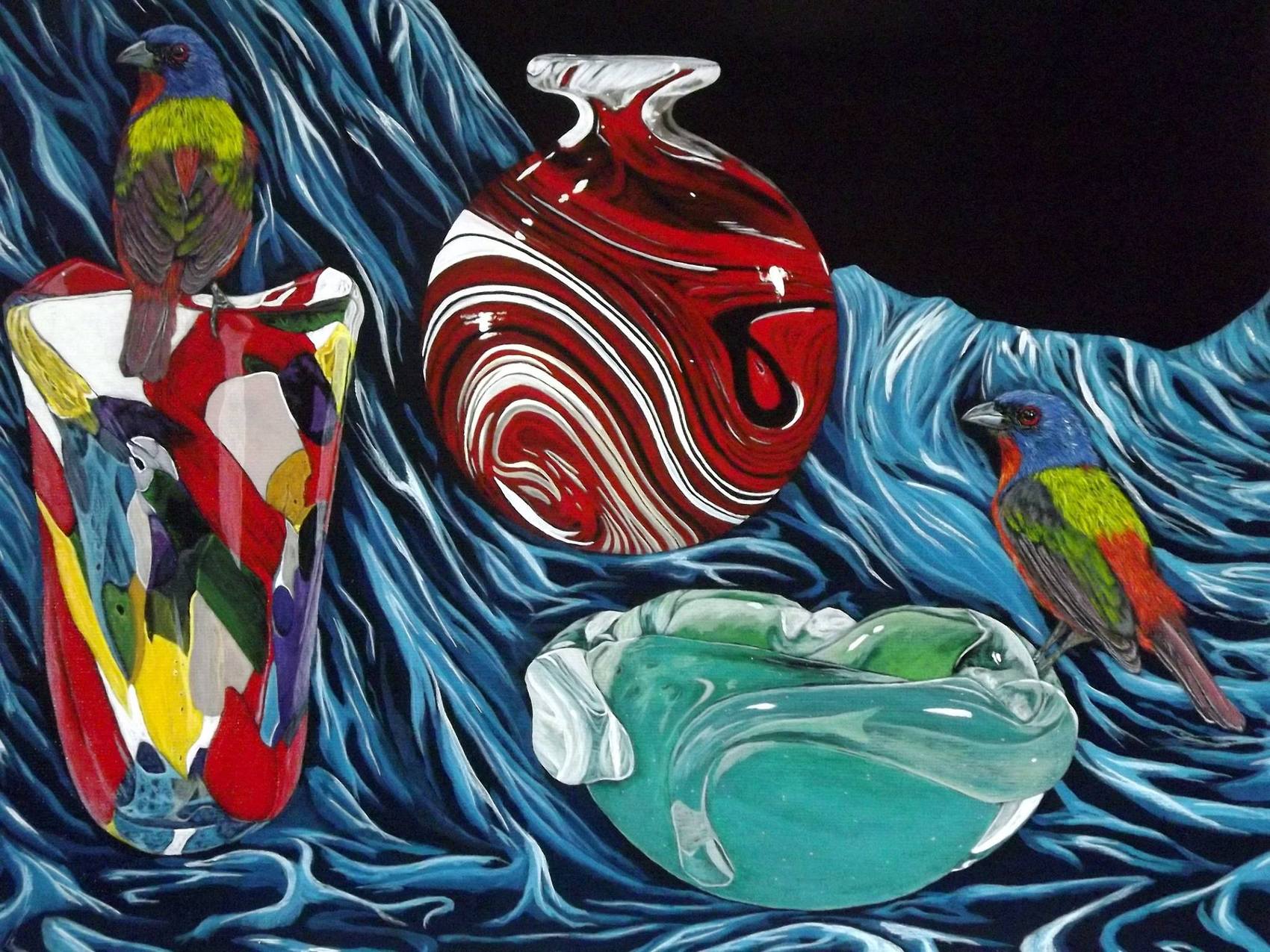 Un tableau symbolisant à merveille la verrerie de Murano avec des couleurs rappelant celles des maisons de Burano , île voisine.Bravo!