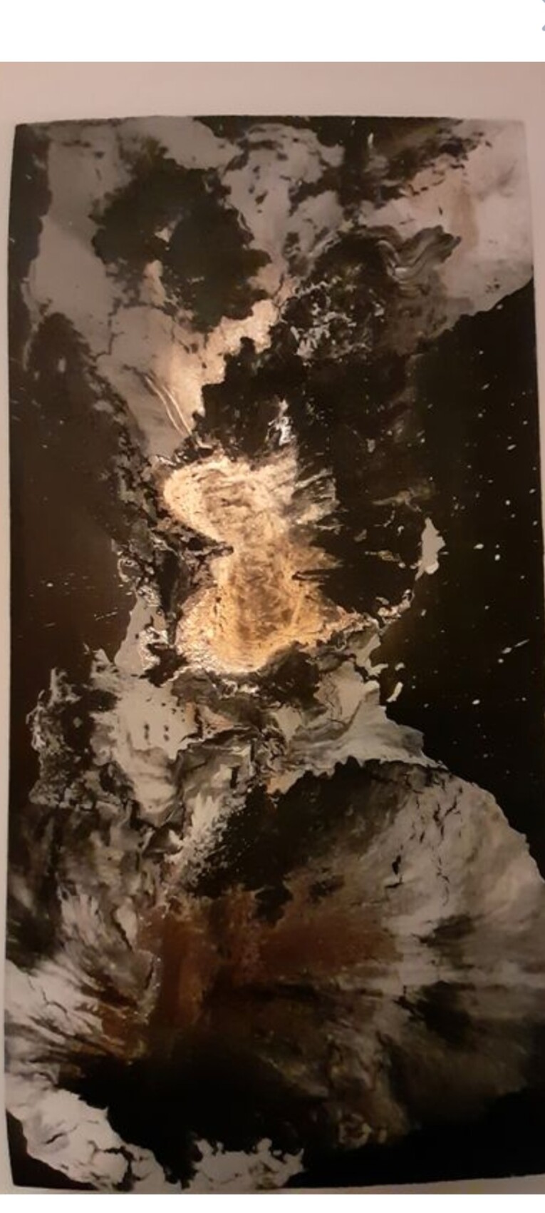 Tableau abstrait couleur doré, noir et blanc 50x40 Tableau signé