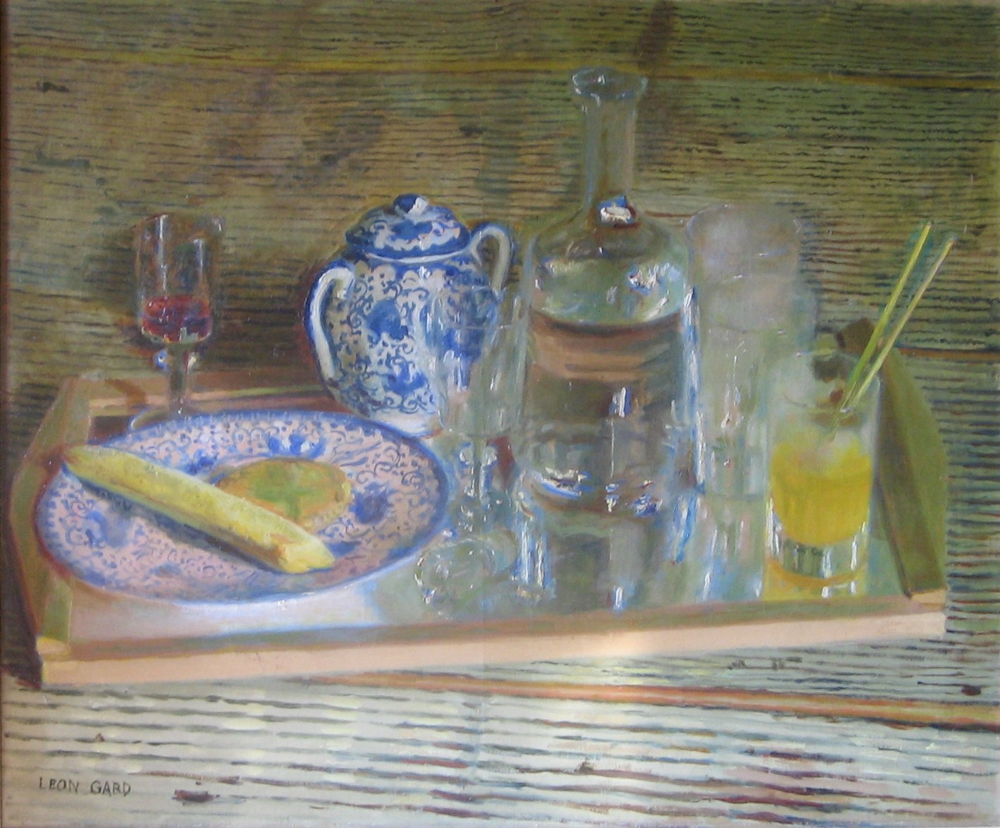 Nature morte à la théiere bleue et à l'orangeade