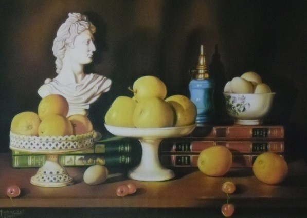 Nature morte en peinture à l'huile sur contreplaqué (50 x 65) année 2001