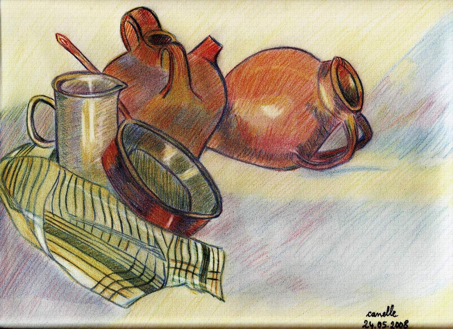 (24 x 32) Crayon de couleurs sur feuille canson C'est un dessin que je viens de réaliser aux crayons de couleurs. Les seules couleurs que j'ai utilisées sont : - le rouge, - le jaune, - le bleu. Voilà le résultat. Pas trop vilain, je pense. canelle