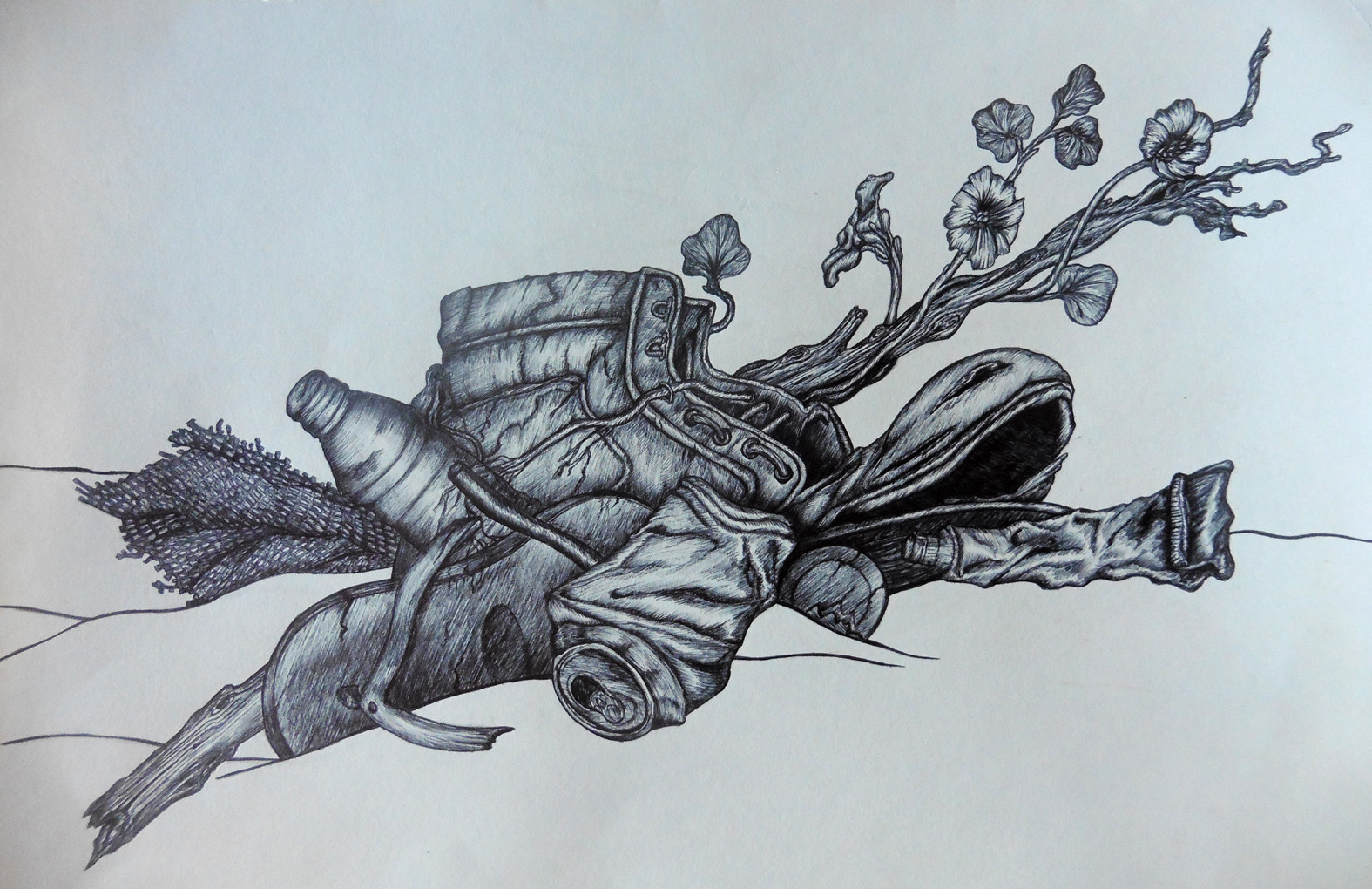 Stylo bille A3 sur Canson - Nature morte ? Liseron des dunes.
