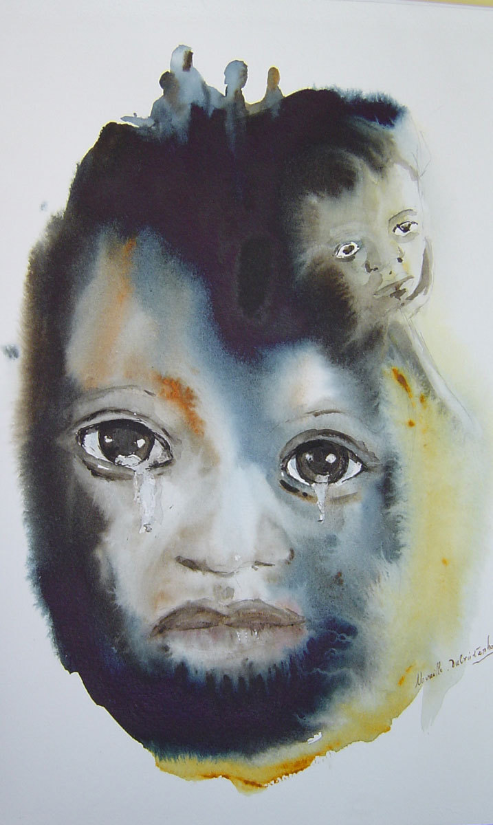 aquarelle mouillé sur mouillé L'immense chagrin des enfants des camps de réfugiés