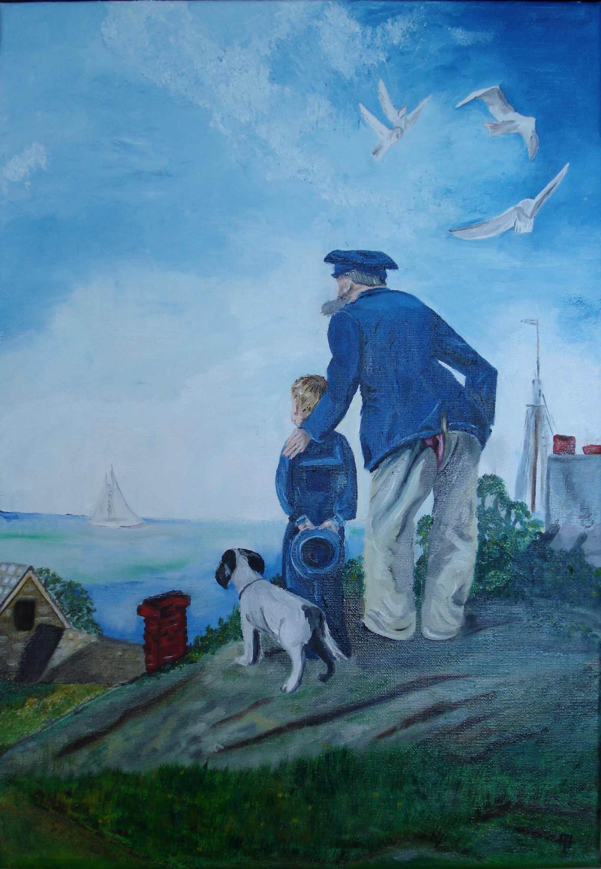 la sagesse du grand-père huile sur toile de lin 53/38 cm