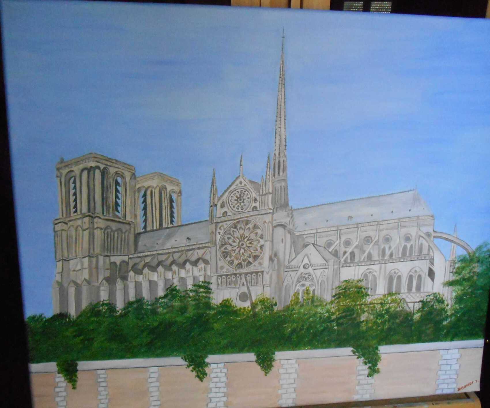 Tableau peint à l'acrylique sur une toile de 55 cm x 46 cm représentant la Cathédrale Notre Dame de Paris