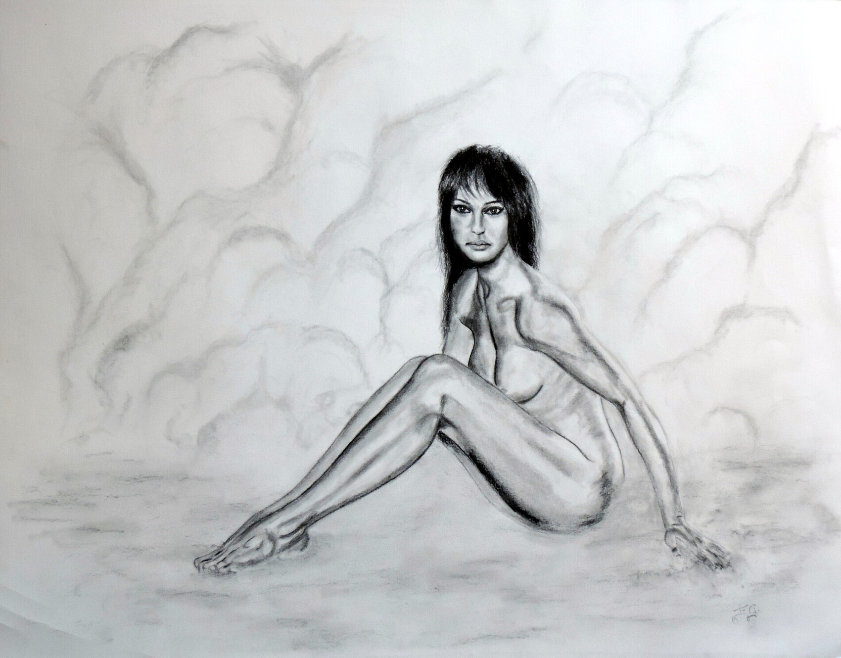 nu "sable et brûme" dessin crayon 50 x 70 Jf Gantner