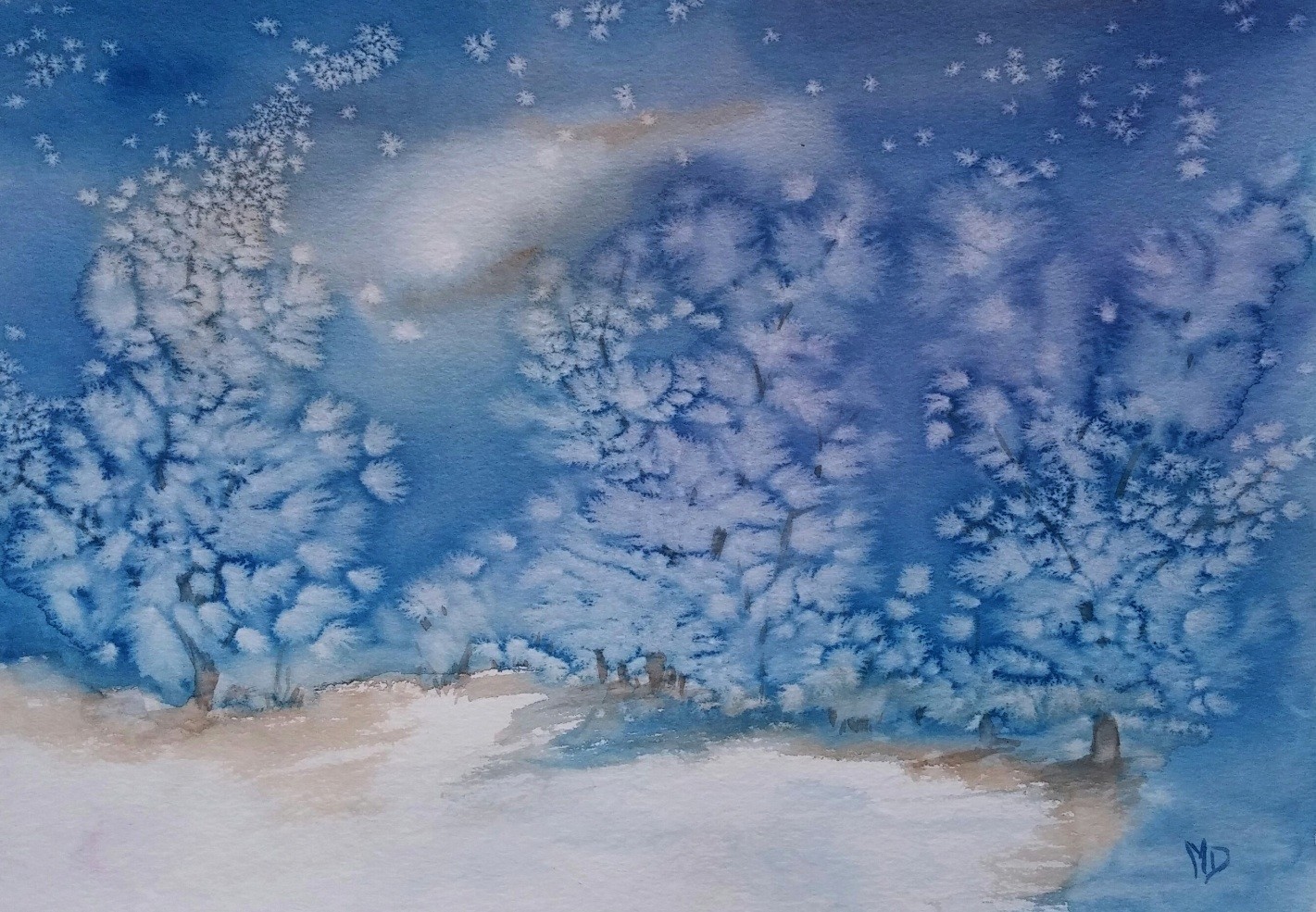 Bravo j'ai beaucoup aimé cette aquarelle ....elle est de saison et le sel donne vraiment cette ambiance de froid et de givre...
