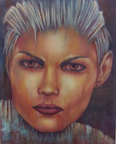 un visage très intéressant , un regard qui interpelle , des couleurs chaudes ... Bravo pour cette oeuvre