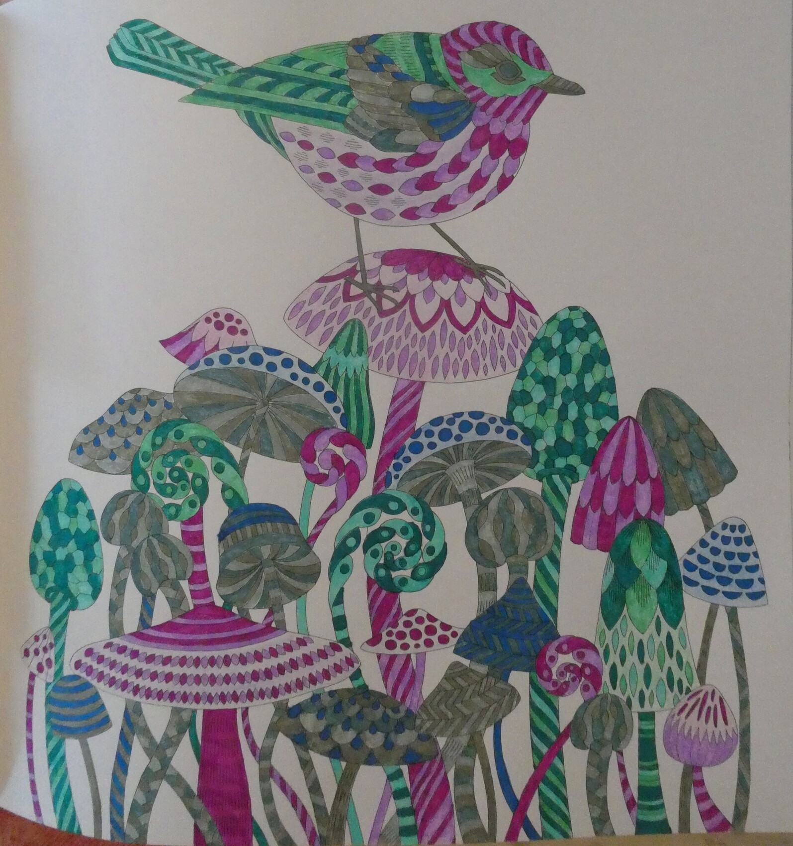 J’ai colorié ce dessin de Millie Marotta tiré du carnet de coloriage Monde sauvage. Il est réalisé aux feutres et aux crayons de couleur.