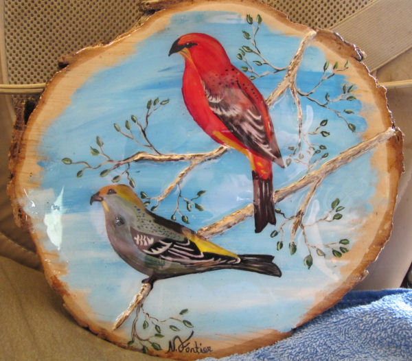 Peinture sur tranche de bois d'érable. Peinture acrylique recouvert de résine