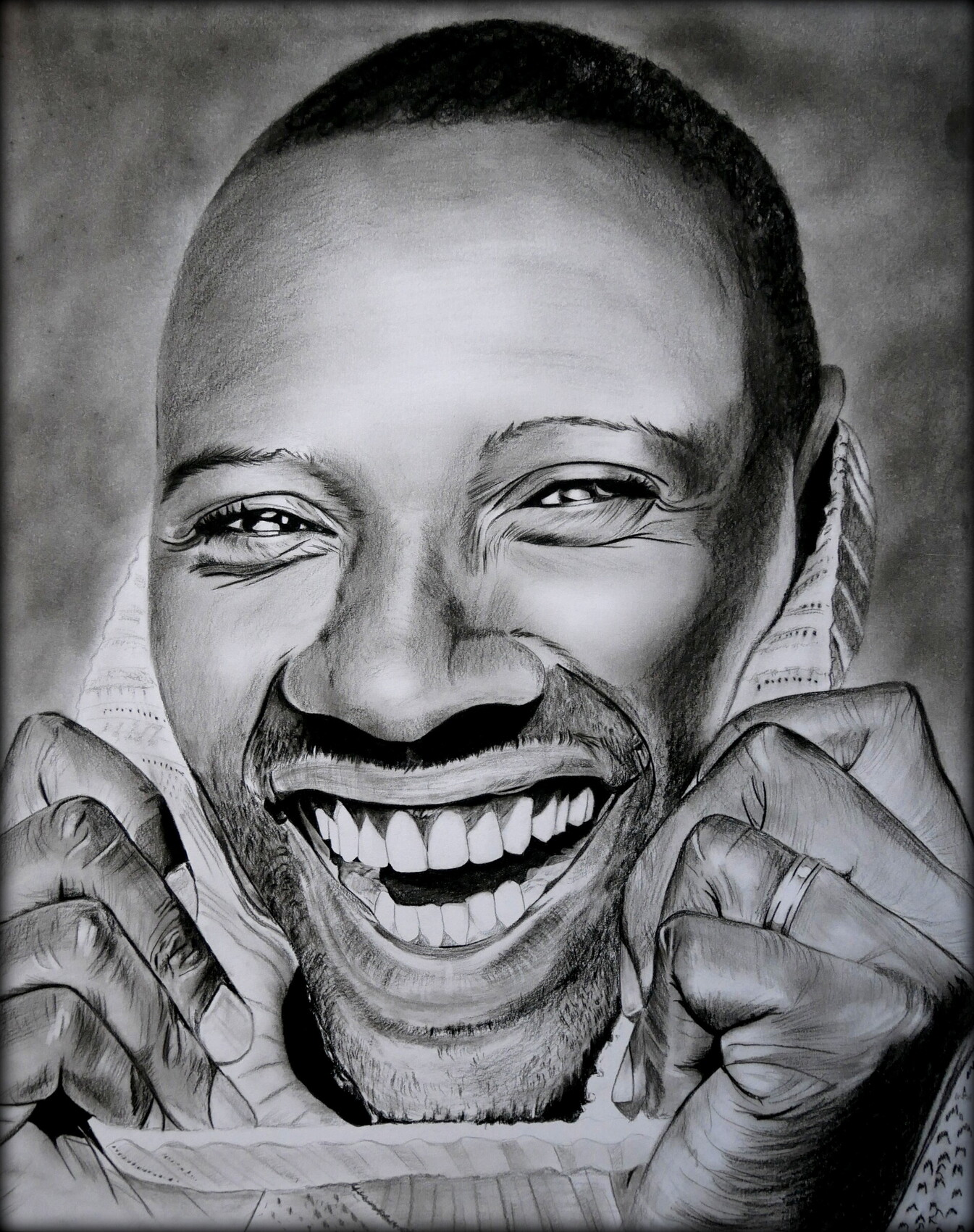 Dessin à la pierre noire de Omar Sy, un acteur que j'adore. Grand format 65/50. Samos17portraitiste