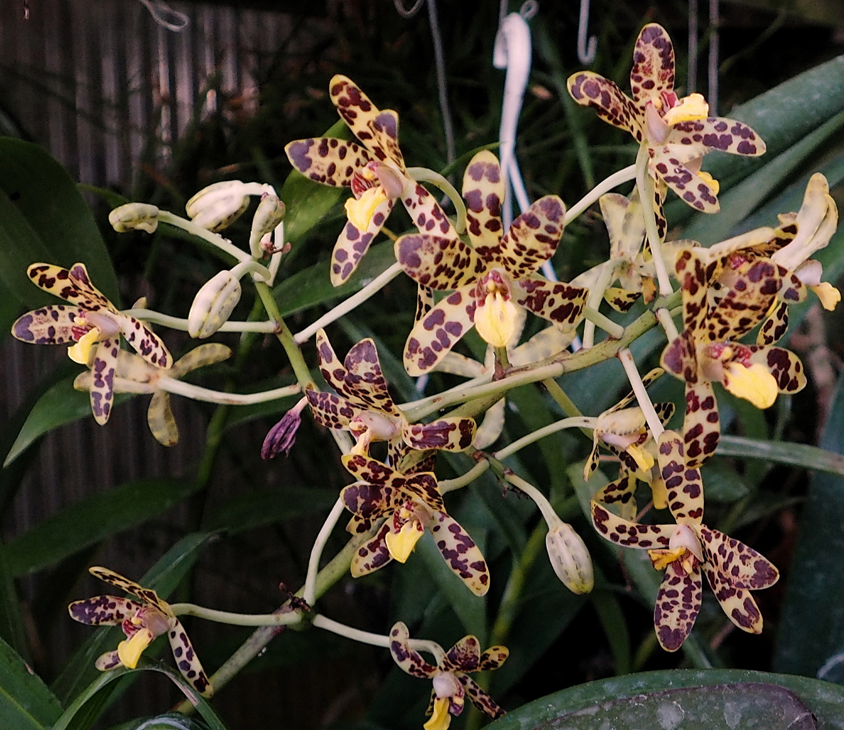Ansellia africana. Cette orchidée pousse dans les savanes de l'ouest africain; elle forme de grosses touffes. En serre, elle finit par ne plus être transportable, et c'est le cas chez moi. J'ai dû prendre ce cliché sur place.