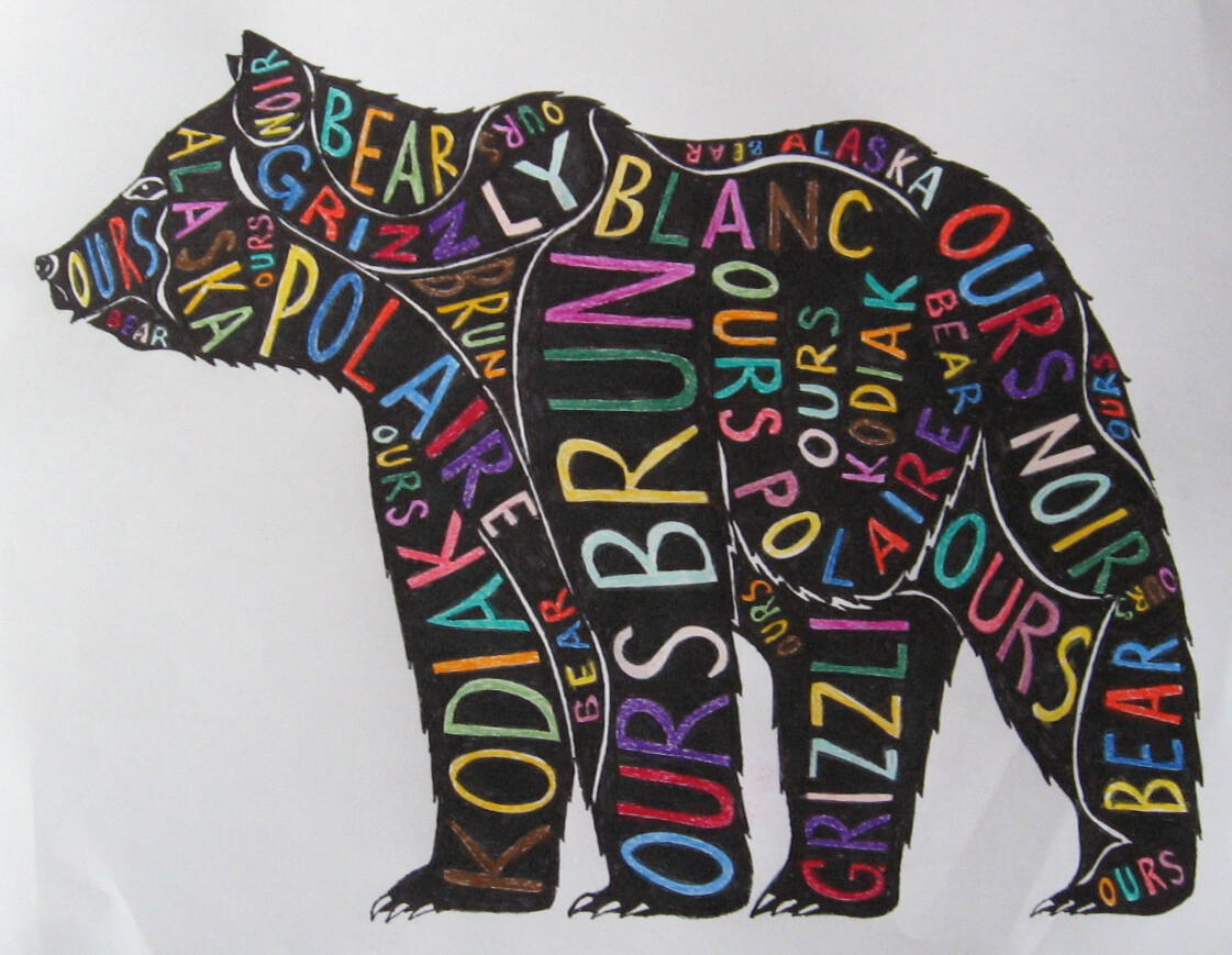 Dessin au crayon de feutre noir et crayons de couleurs.