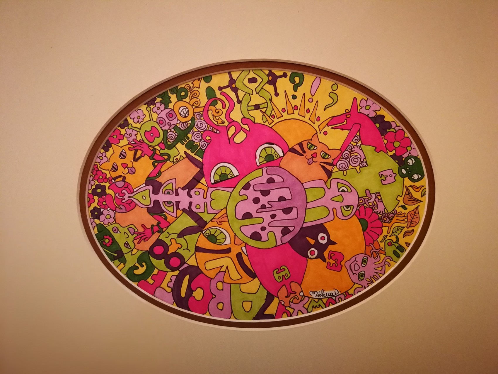 Cadre récupéré. Marie Louise ovale. Feutres.