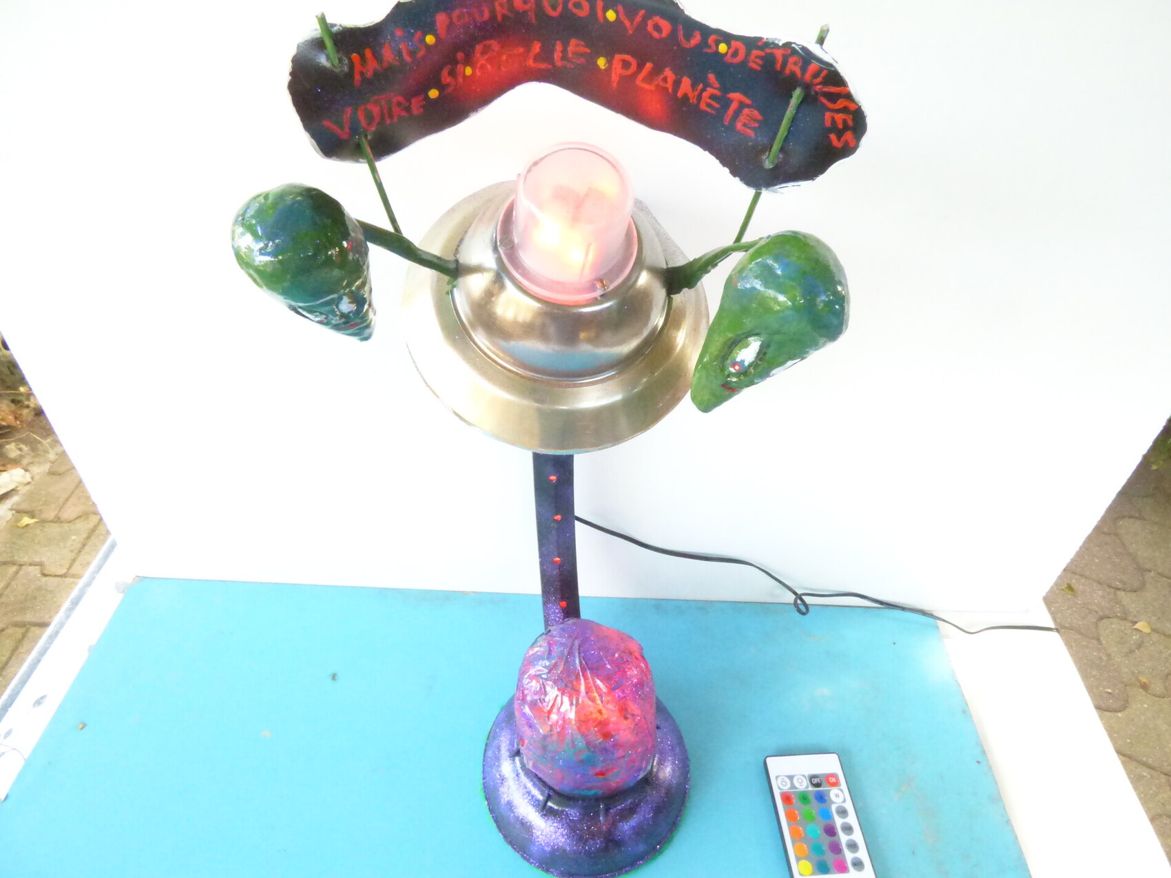 lampe de bureaux avec jeux de couleur a leds les 2 marsiens qui dise mai pour quoi vous détruizer votre si belle planete ????