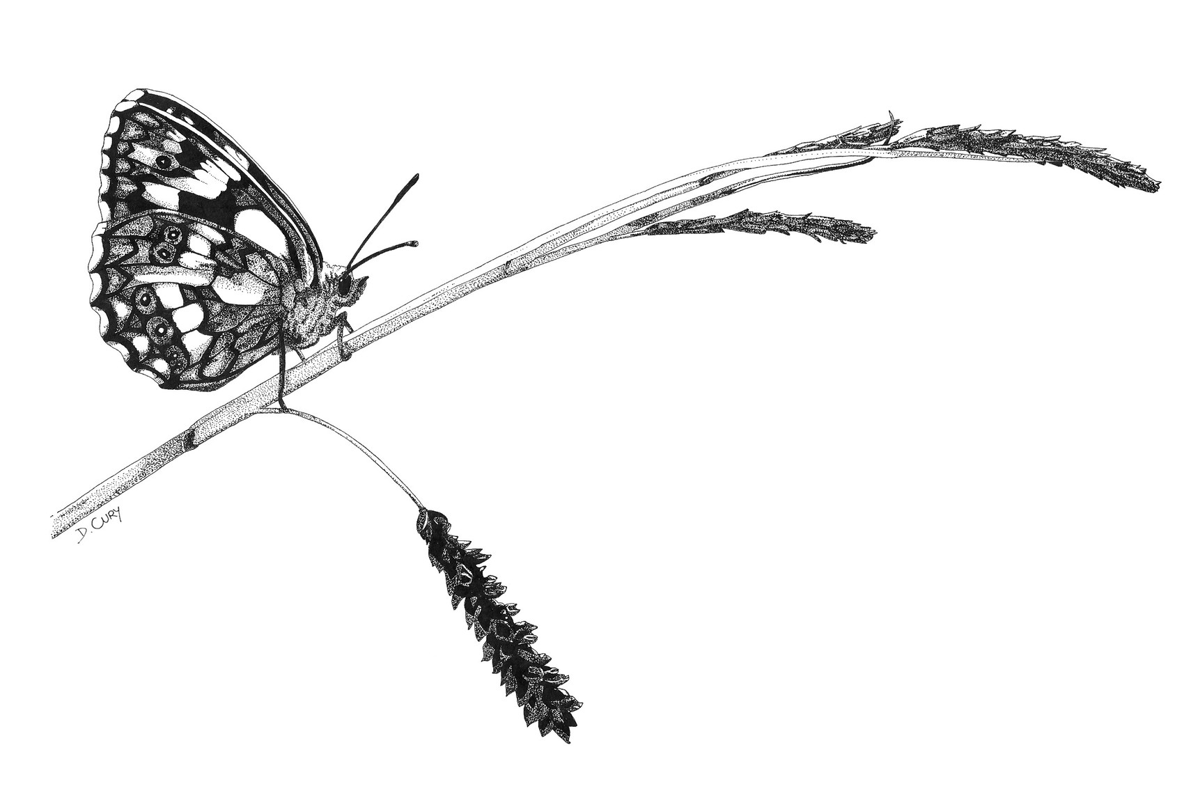 Papillon demi-deuil sur un Carex L'un de mes premiers dessins à l'encre de chine !!