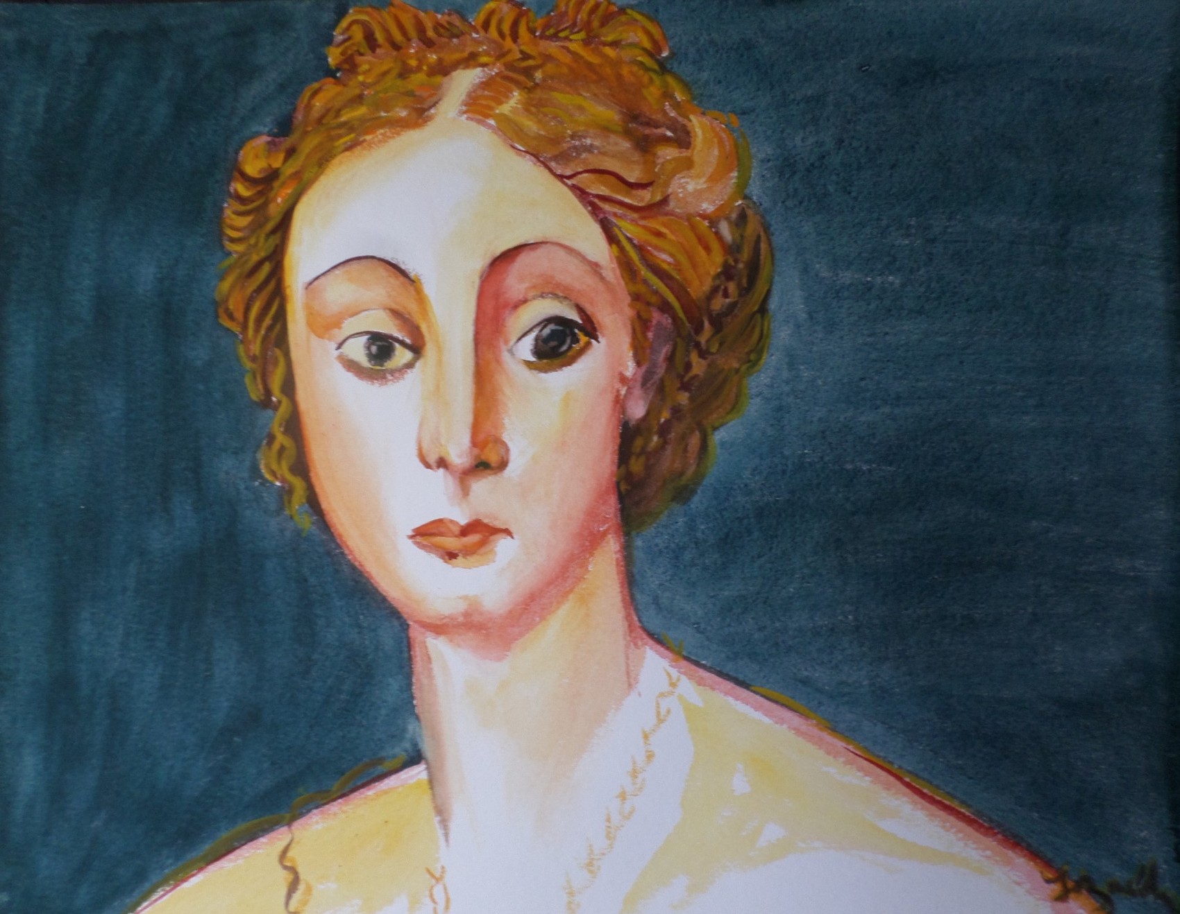 merci les amis , je me suis inspiré d'une peinture occidentale dont je ne connais ni le nom de l'oeuvre ni celui du peintre , sans doute du XVIIIème siècle ; d'abord j'ai peint " Dame d'autrefois" puis j'ai peint " Pensée " en pensant un peu à Picasso dans sa période des ballets Russes