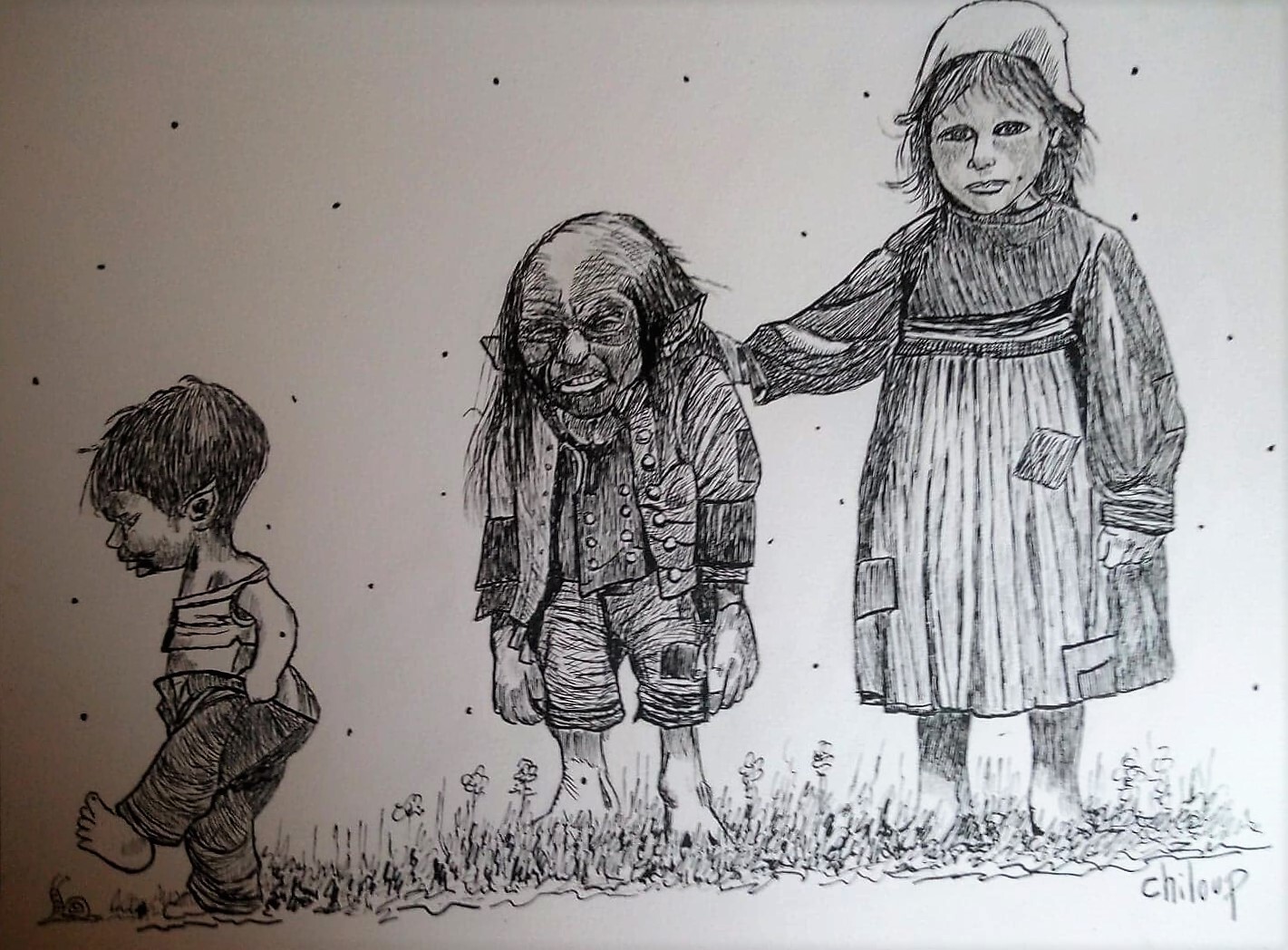Dessin à la plume à dessin et à l'encre de Chine Format 24 X 30 D'après dessin au fusain d'un livre illustré sur les légendes bretonnes