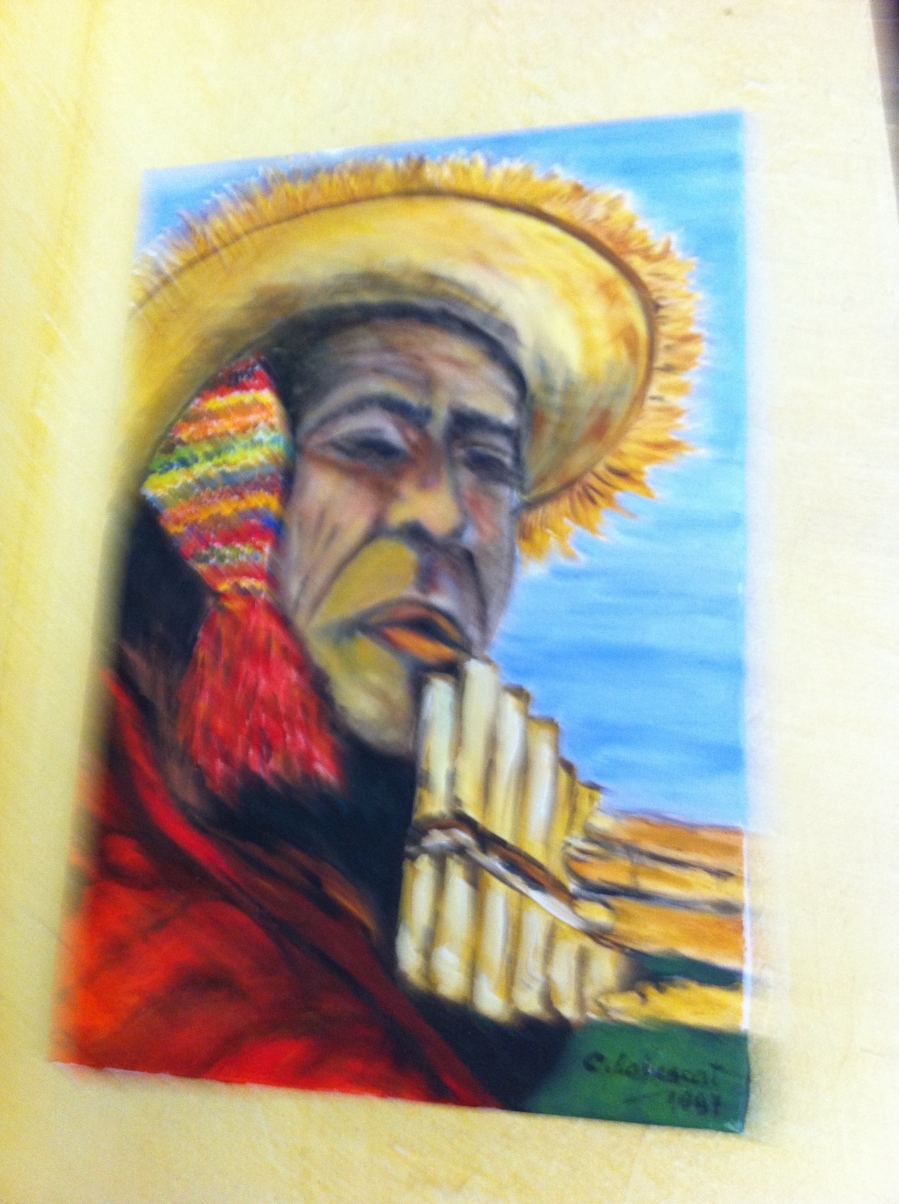 Huile . Deux Peruviens qui se regardent.