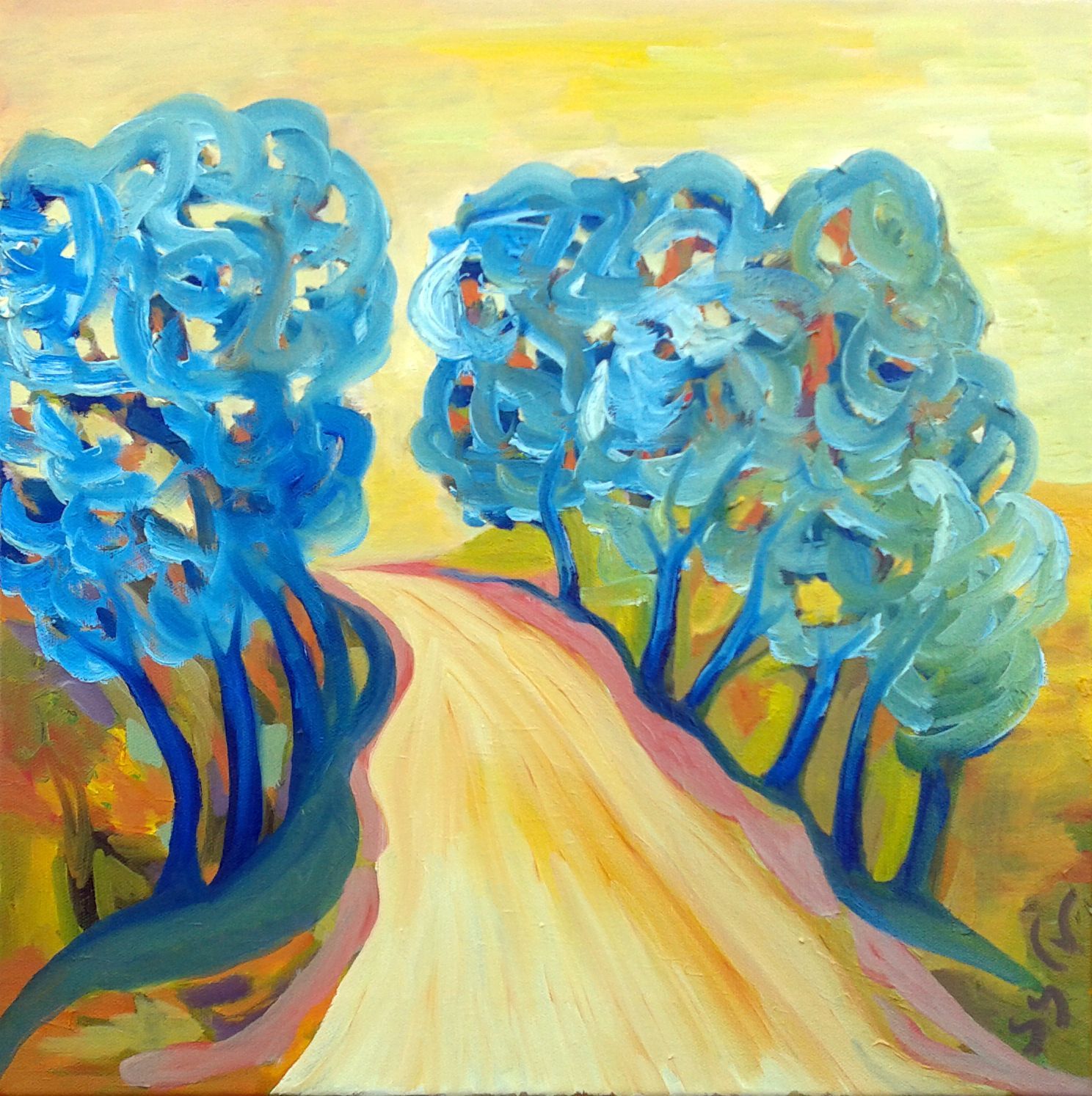 Un petit chemin le soir au soleil tombant? Une belle lumière baigne votre huile!