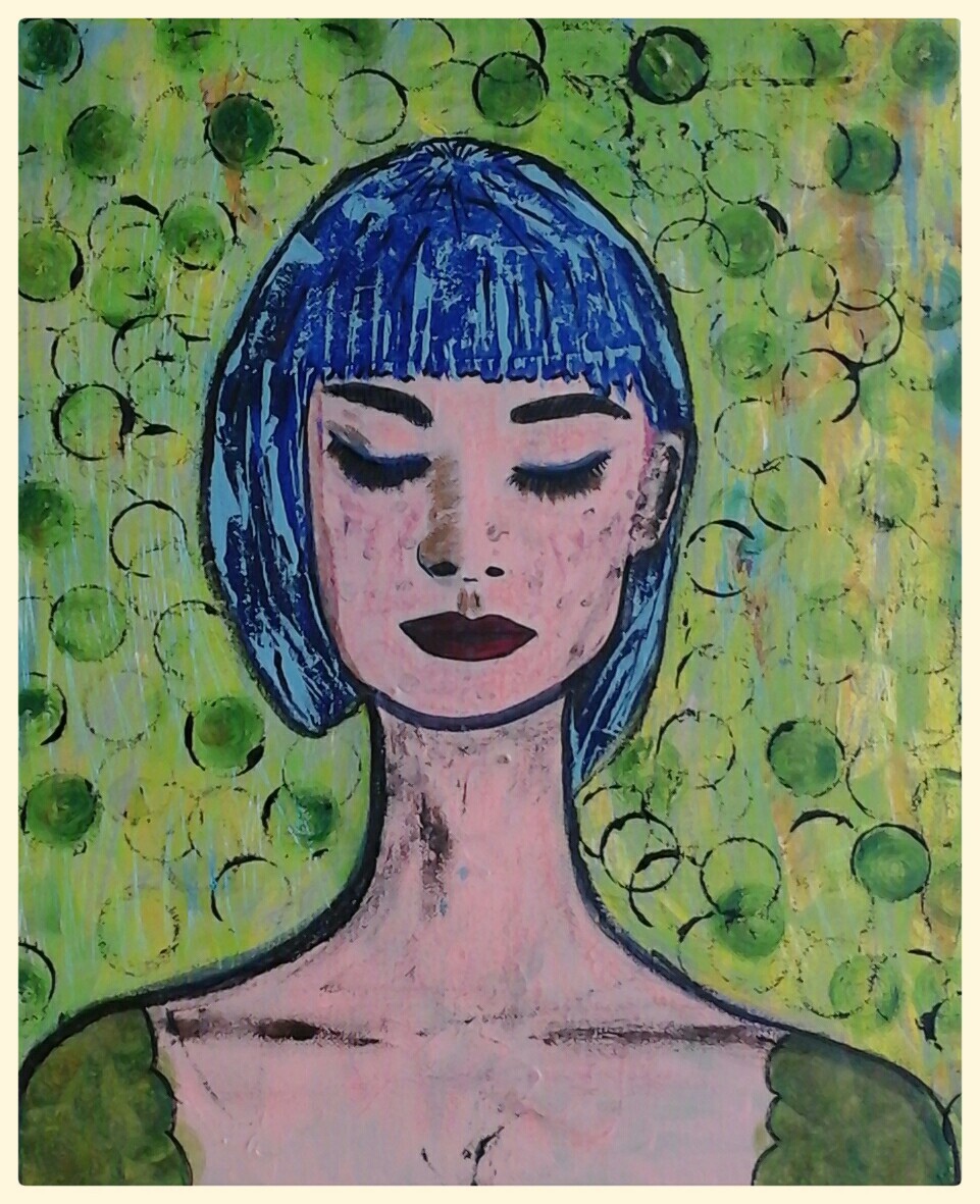 J'aime beaucoup les yeux fermés et les cheveux bleus , une forme de grande méditation , bravo , amitié :-)