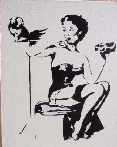 Peinture acrylique sur toile coton (33x41cm) reproduction d'une pin up de pub des années 30.