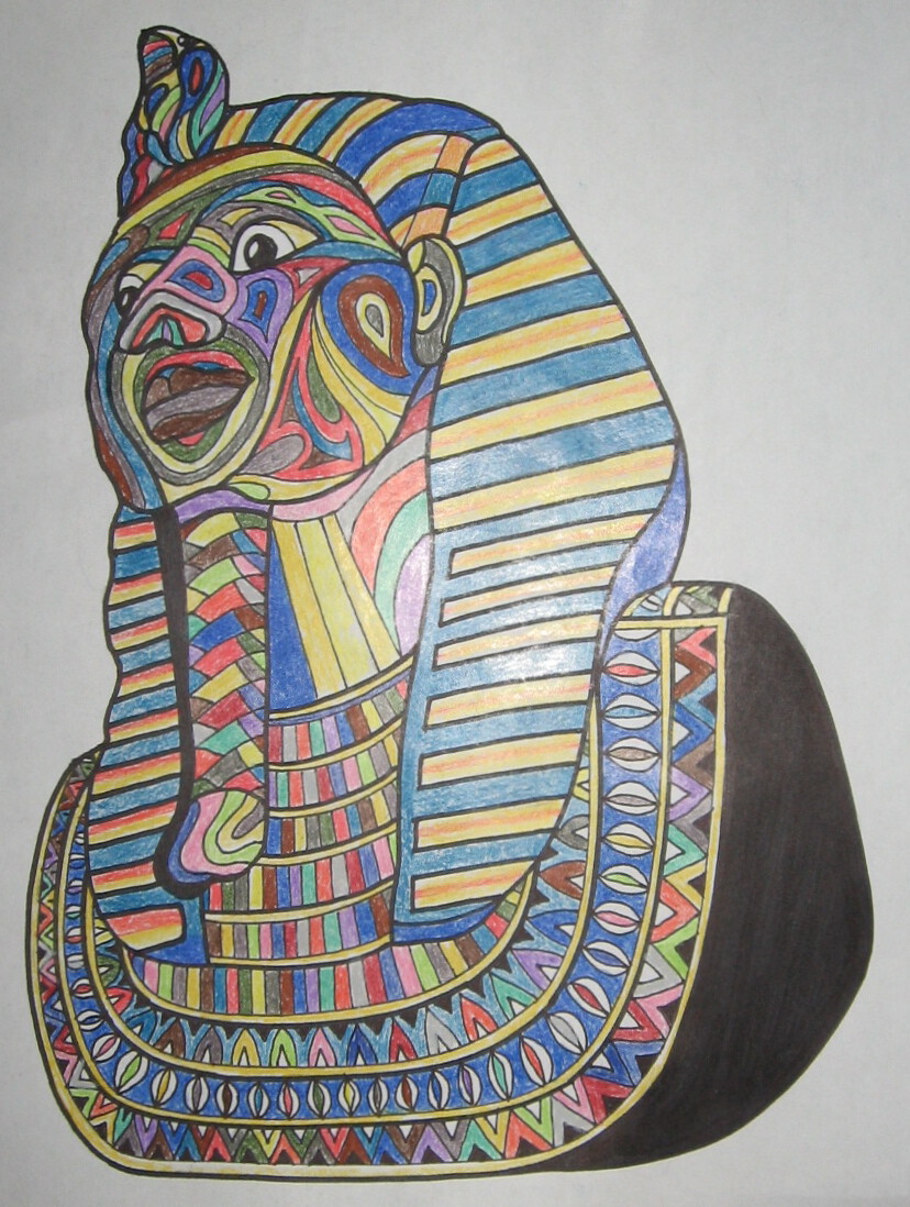 Dessin au crayon de feutre noir et crayons de couleurs.