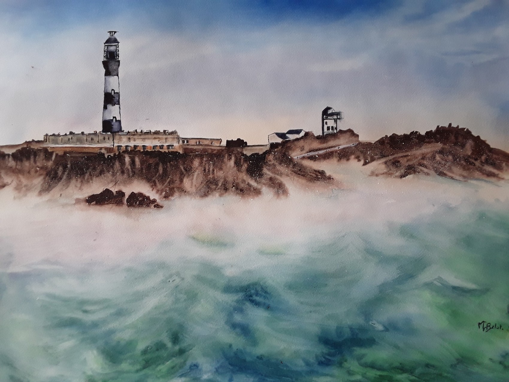 une réussite cette mer déchainée et douce à la fois par la texture qui contraste avec l'aspect des rochers et du phare ! bravo