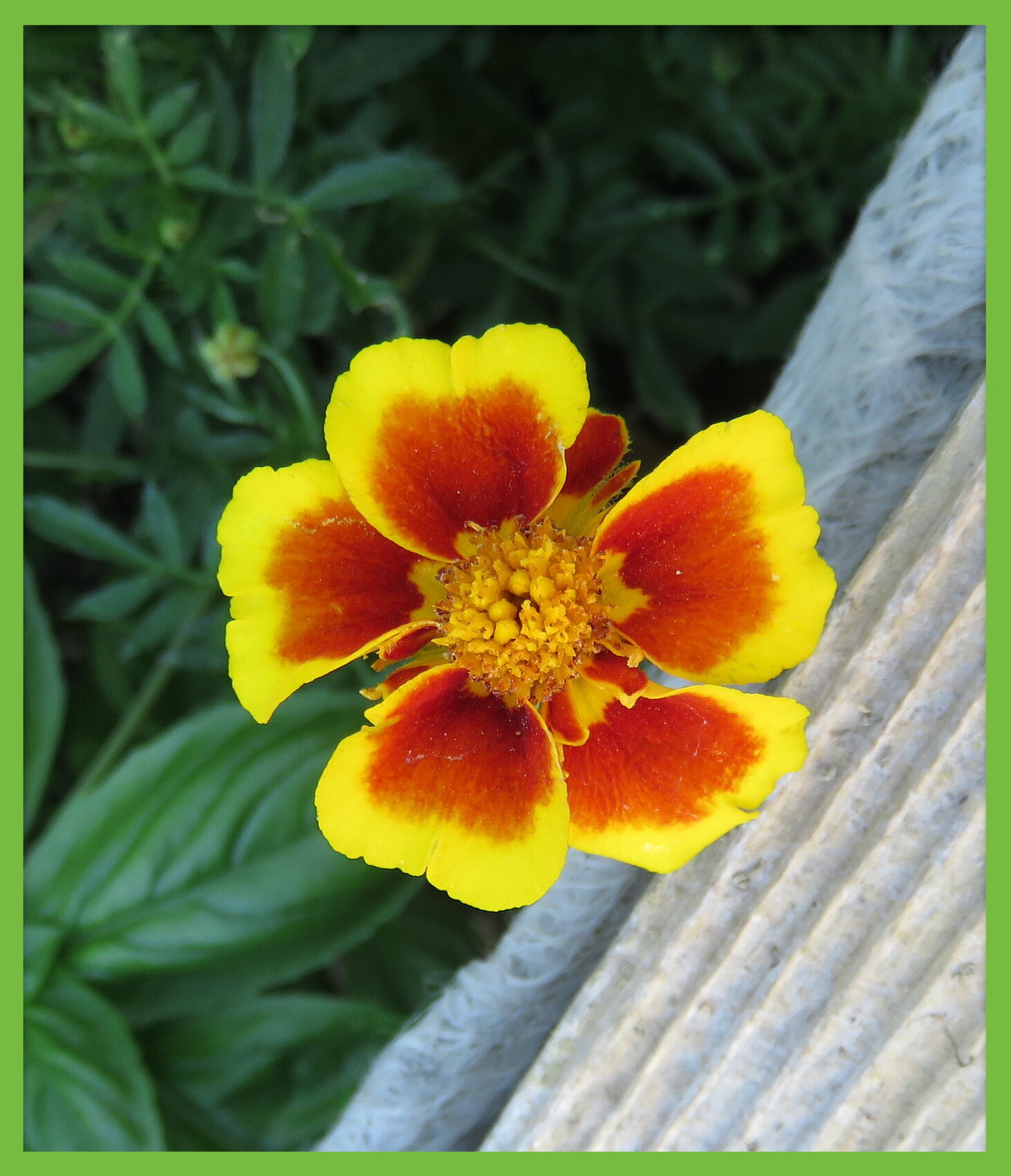 Jardin partagé, juillet 2022. Plante compagne du potager dont l’odeur repousse de nombreux parasites et les racines produisent du thiophène qui a un effet inhibiteur sur des vers, les mouches blanches, le liseron et le chiendent = Muriel Reulet = Shared garden, 2022. Companion plant of the vegetable garden whose smell repels many parasites and the roots produce thiophene which has an inhibitory effect on worms, white flies, bindweed and quack.