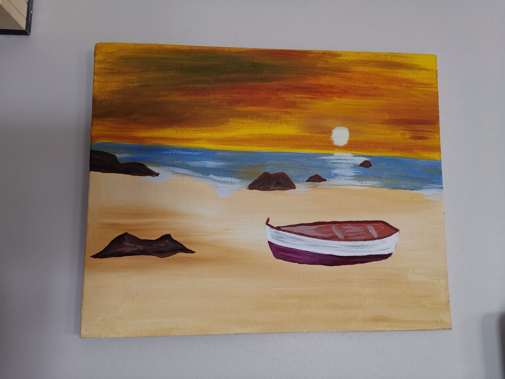 Petit tableau de 24X30. Ma difficulté ici était les reflets et la mer.