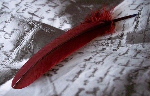 très très belle image , j'aime beaucoup la plume qui se détache de ce parchemin et sublime la couleur d'un rouge sanglant ...