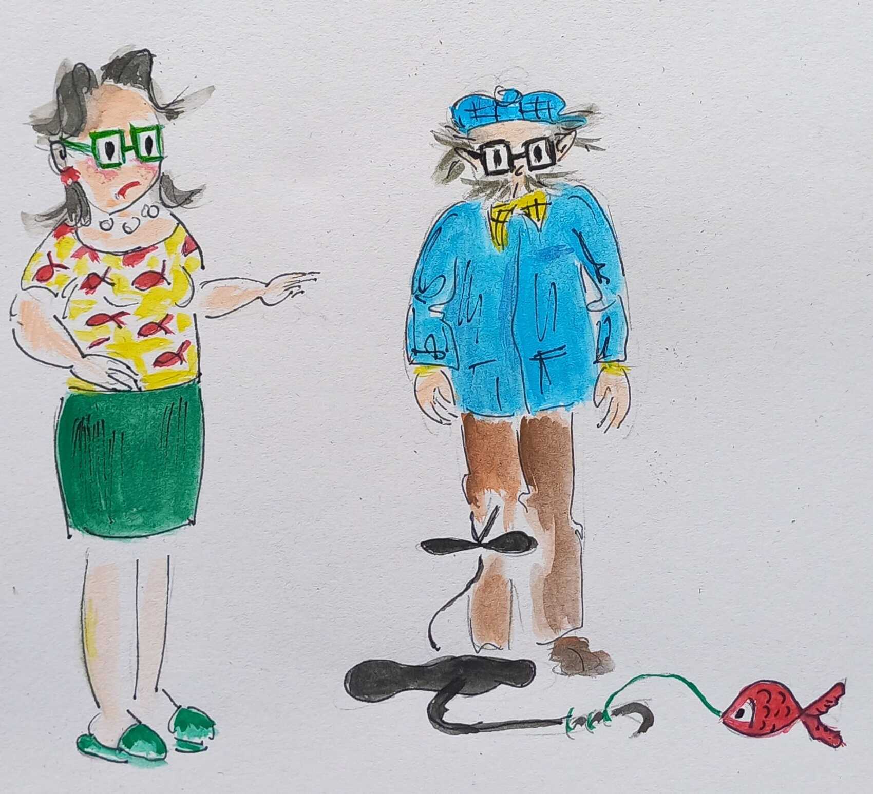 Marcel : Tiens ! Un poisson chat ! // Simone : Non un poisson d'avril !