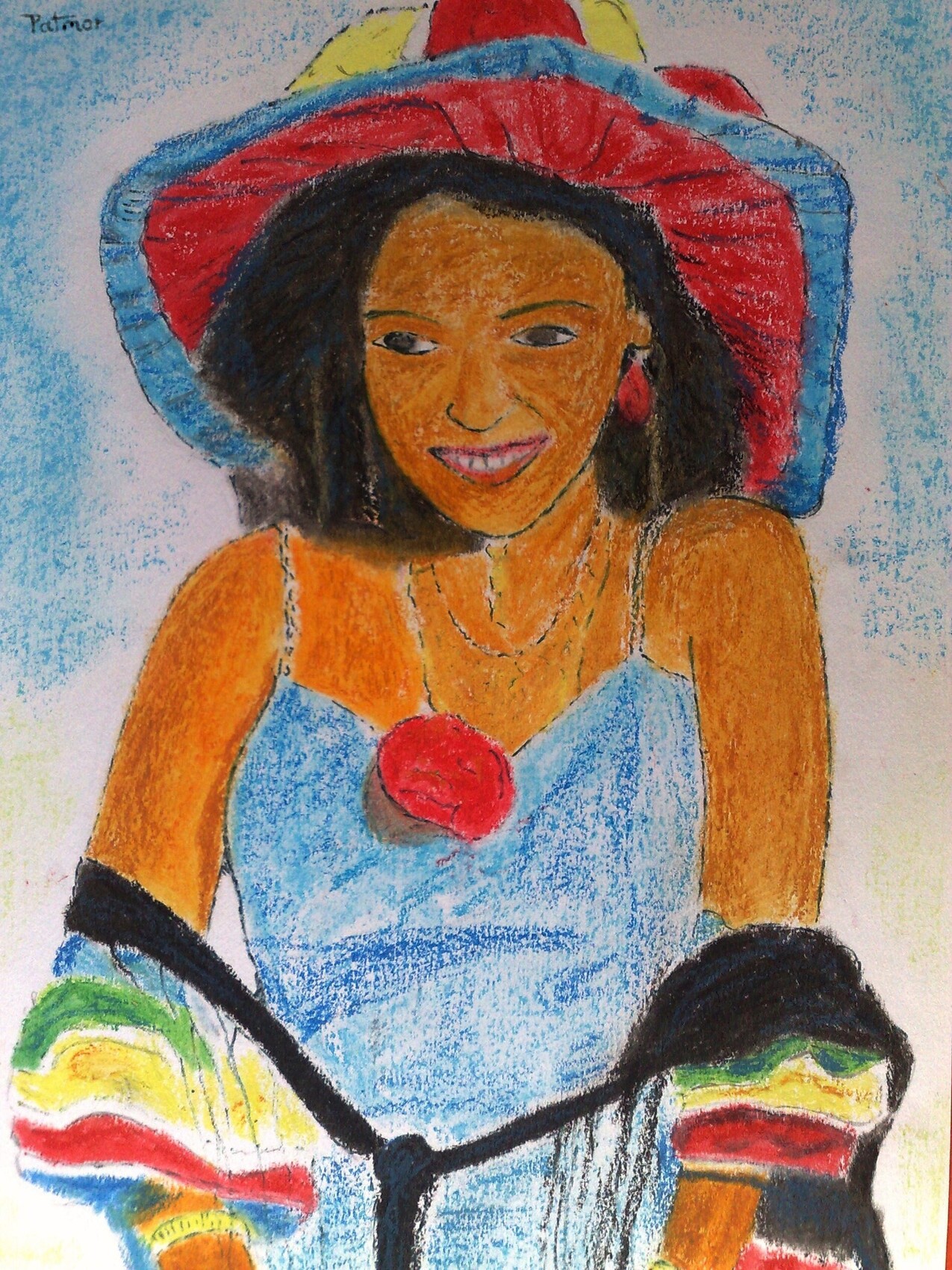 Pastel gras sur papier dessin 2005 "La langue tahitienne, c'est une langue du cœur, avec beaucoup de jeux de mots."Heivra
