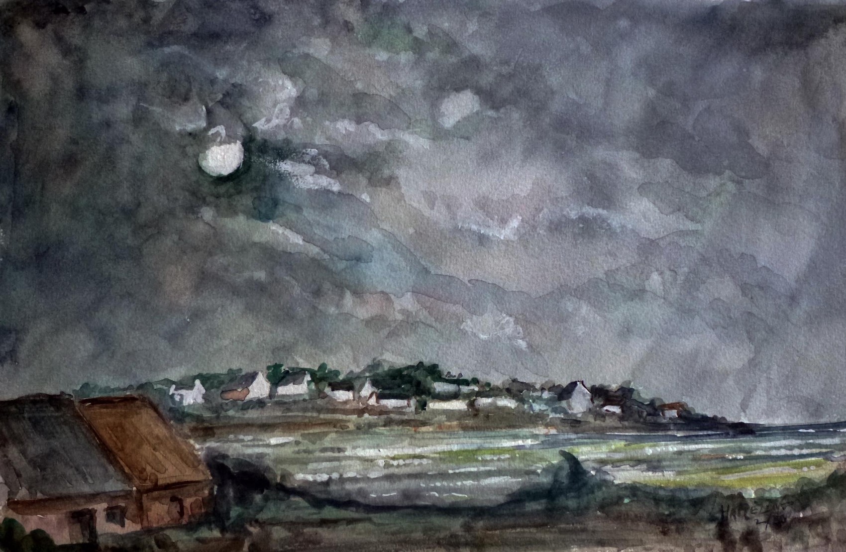 Pors carn à St Guénolé au clair de lune (aquarelle)