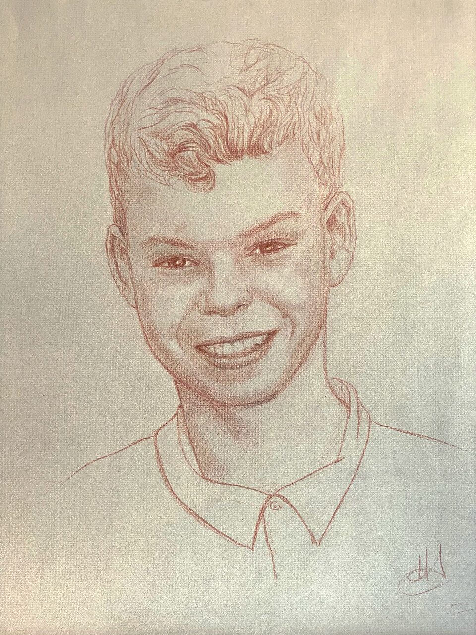 Portrait de Marcelin réalisé à la sanguine avec rehaut à la craie.
