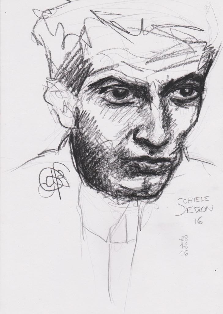 ha, Egon Schiele, tout un programme. Portrait énergique, comme si le modèle avait été esquissé furtivement au détour d'une ruelle. Beau travail!