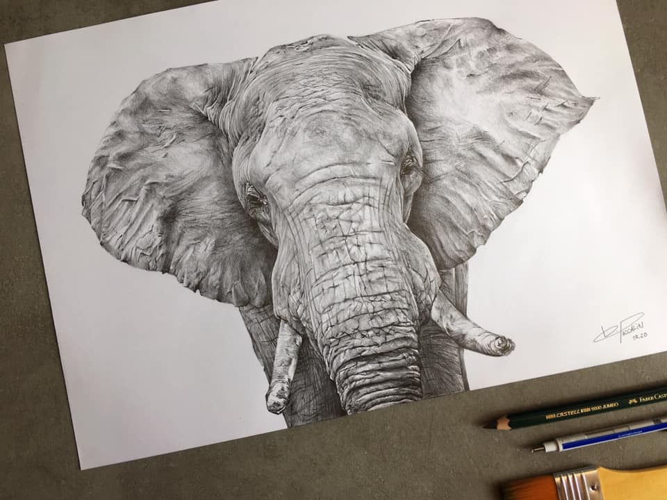 > Portrait d’éléphant ✏️ Faber-Castell 9000 > Papier Canson / The wall - format A3 > 8h ✍️ Dernier dessin en mode confinement, fin d’une belle série ???? Je vais m’inspirer de la force et du calme de cet éléphant pour les jours à venir, je vous en souhaite tout autant ???????? #elephant #dessin #realiste #damienpaccalin