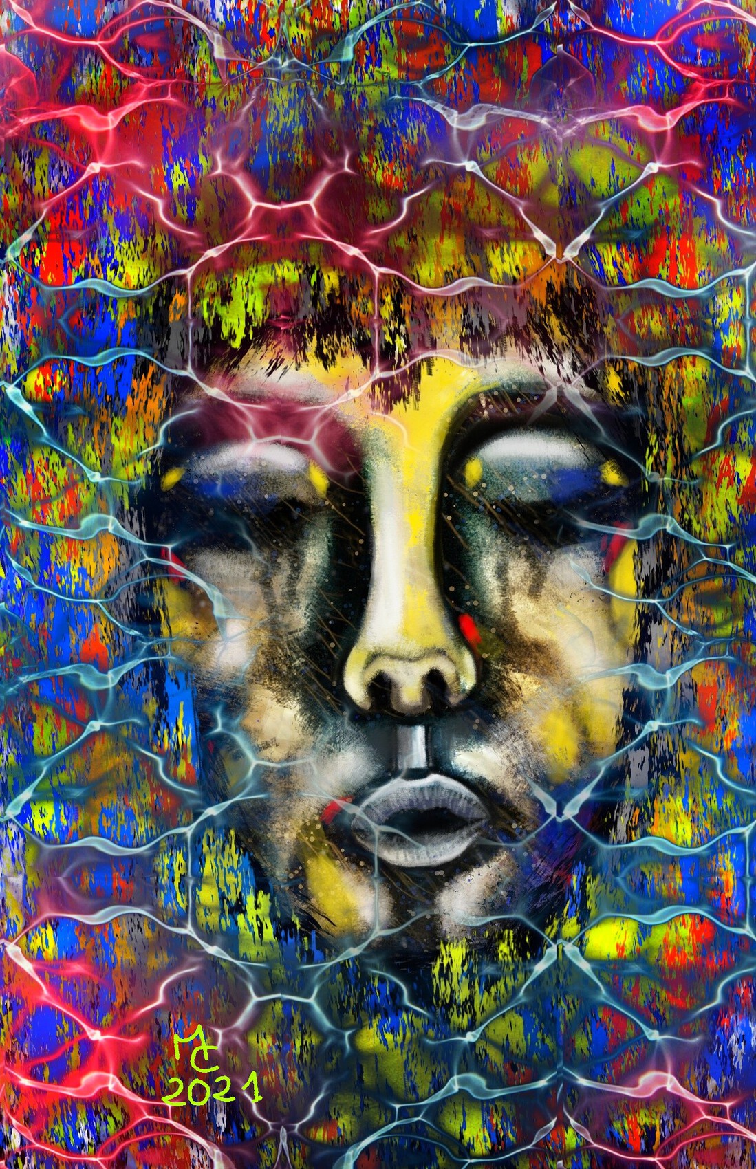 J'aime beaucoup celui-ci avec ces écailles de couleur, le visage semble prit dans une toile de mailles