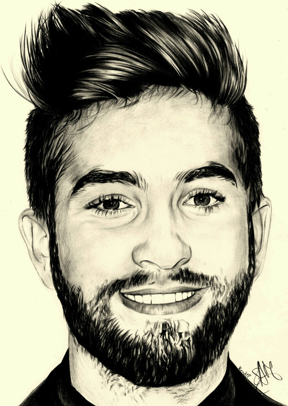 Portrait dessin au crayon de Kendji girac. Portraitiste Charente-Maritime samos17. Portrait sur commande d'après vos photos. Infos/contact : Samos17.com